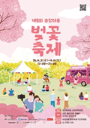성동구에서 벚꽃 시즌에 맞춰 열리는 대표적인 지역 축제로는 '송정마을 벚꽃축제'가 있습니다. 앞서 숨겨진 명소로 소개해 드린 송정제방길 일대에서 매년 벚꽃 만개 시기에 맞춰 4월 초에 개최됩니다.