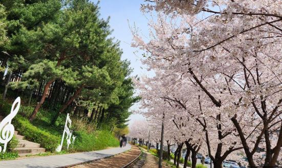 두 번째 명소는 옛 기찻길의 낭만을 그대로 간직하고 있는 경춘선 숲길입니다. 과거 기차가 달리던 폐철길을 공원으로 탈바꿈한 곳인데요. 철길 양옆으로 아름드리 벚나무들이 줄지어 서 있어 이국적이고 빈티지한 감성의 사진을 남기기에 최고입니다.