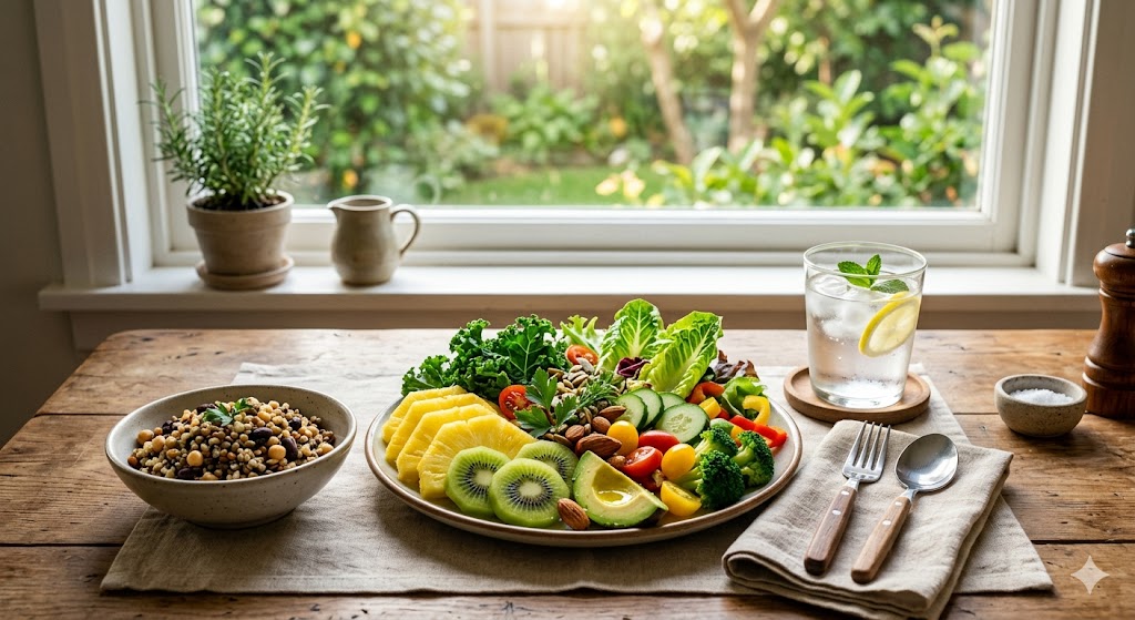 시판되는 훌륭한 소화 효소 영양제를 섭취하는 것도 확실히 건강에 도움은 되지만, 필자가 오랫동안 일상 속에서 직접 겪고 실천하며 터득한 가장 훌륭하고 부작용 없는 근본적인 소화력 향상 팁은 바로 '천천히 씹어 먹기'와 '천연 식품을 통한 자연 섭취'입니다. 우리의 입속 침에는 이미 아주 강력한 탄수화물 분해 효소인 아밀라아제가 듬뿍 들어 있습니다. 음식을 입에 넣고 의식적으로 최소 30번 이상 꼭꼭 씹어 삼키기만 해도, 위장으로 가는 물리적, 화학적 부담이 확연하게 줄어들어 식후 특유의 더부룩함이 마법처럼 즉시 사라집니다. 또한, 강력한 단백질 분해 능력을 자랑하는 파인애플(브로멜라인 성분)이나 키위(액티니딘 성분), 탄수화물 소화에 탁월하게 좋은 무(디아스타아제 성분)와 같이 천연 소화 효소가 아주 풍부하게 함유된 신선한 과일과 채소를 평소 밥상 식단에 자연스럽게 곁들이는 것만으로도 비싼 보충제 영양제 못지않은 아주 훌륭한 소화 효소 효능을 위장 부담 없이 직접 경험할 수 있습니다.